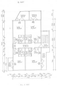 Na prvom a druhom poschodí sú 4 1-izbové byty, v suteréne 5 izbový byt a na prízemí 3 izbové byty. Na poschodí ďalšie 4 byty.
