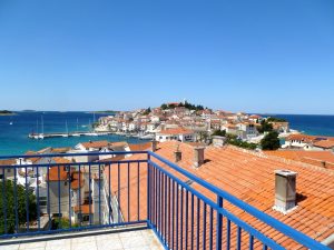 Primošten, samotné centrum (približne tretí rad od mora), samostatný apartmánový dom s 10 apartmánmi a 15 parkovacími miestami.